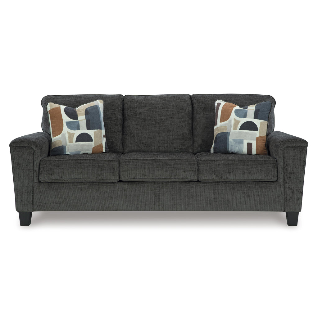 There’s something about this sofa that’s so easy to appreciate. Maybe it’s the plush upholstery and soothing tone, eager to... There’s something about this sofa that’s so easy to appreciate. Maybe it’s the plush upholstery and soothing tone, eager to support your quest for total relaxation. Perhaps it's the modern flair of its simple lines, tapered legs and abstract-patterned pillows. Whatever it is that appeals to you, this is a piece you're gonna love. View more