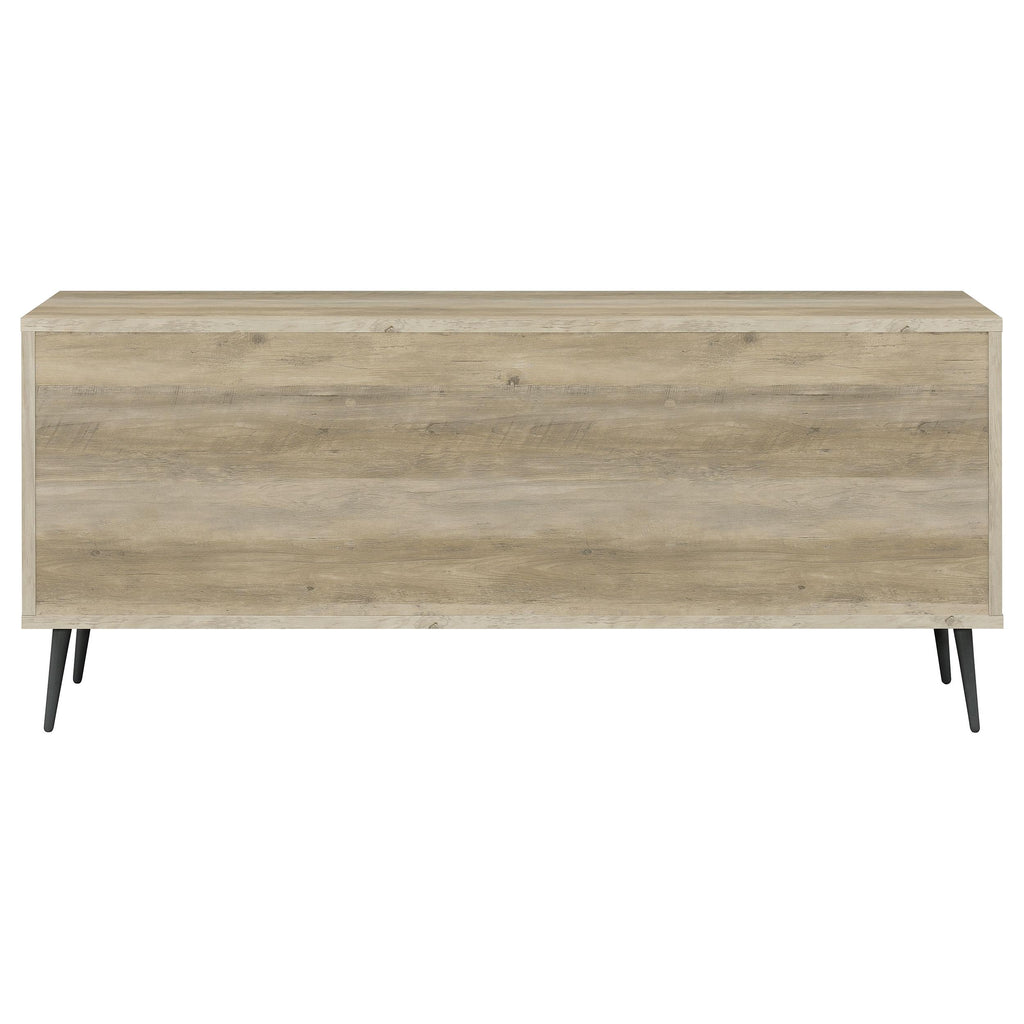 • Pine wood finish case with contrasting antique gray door and drawer fronts