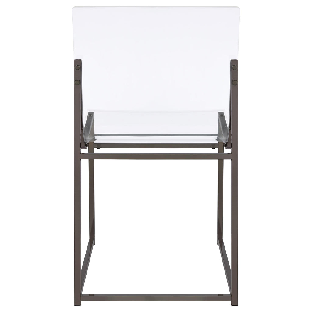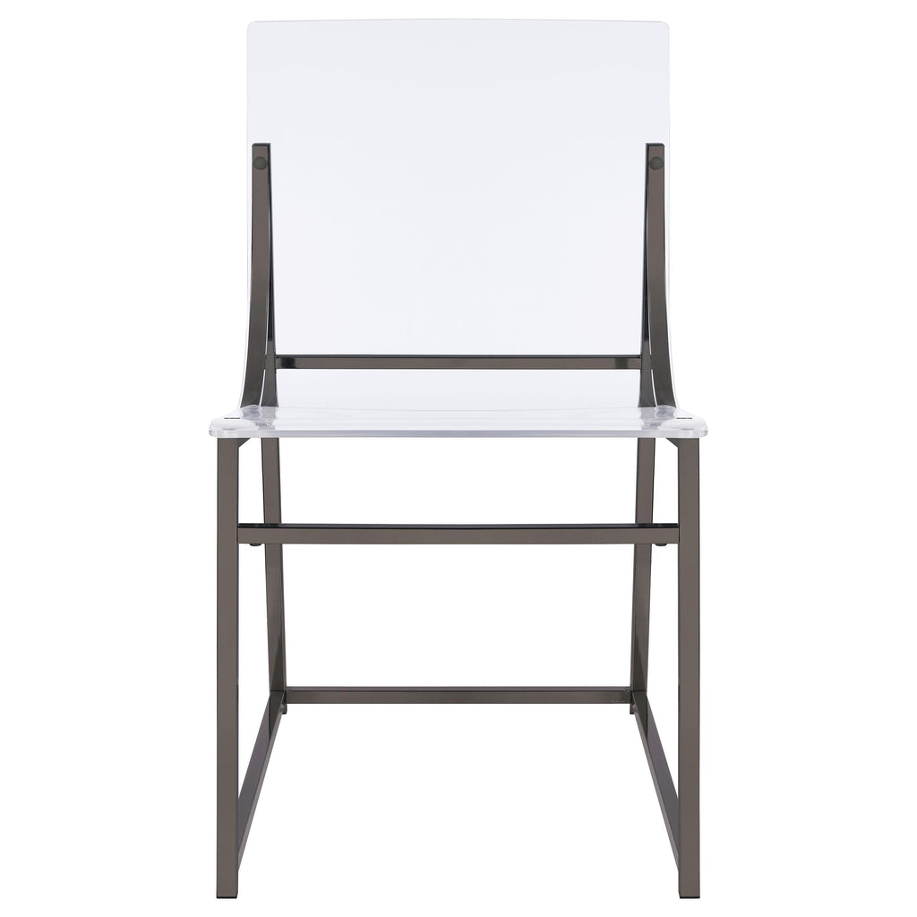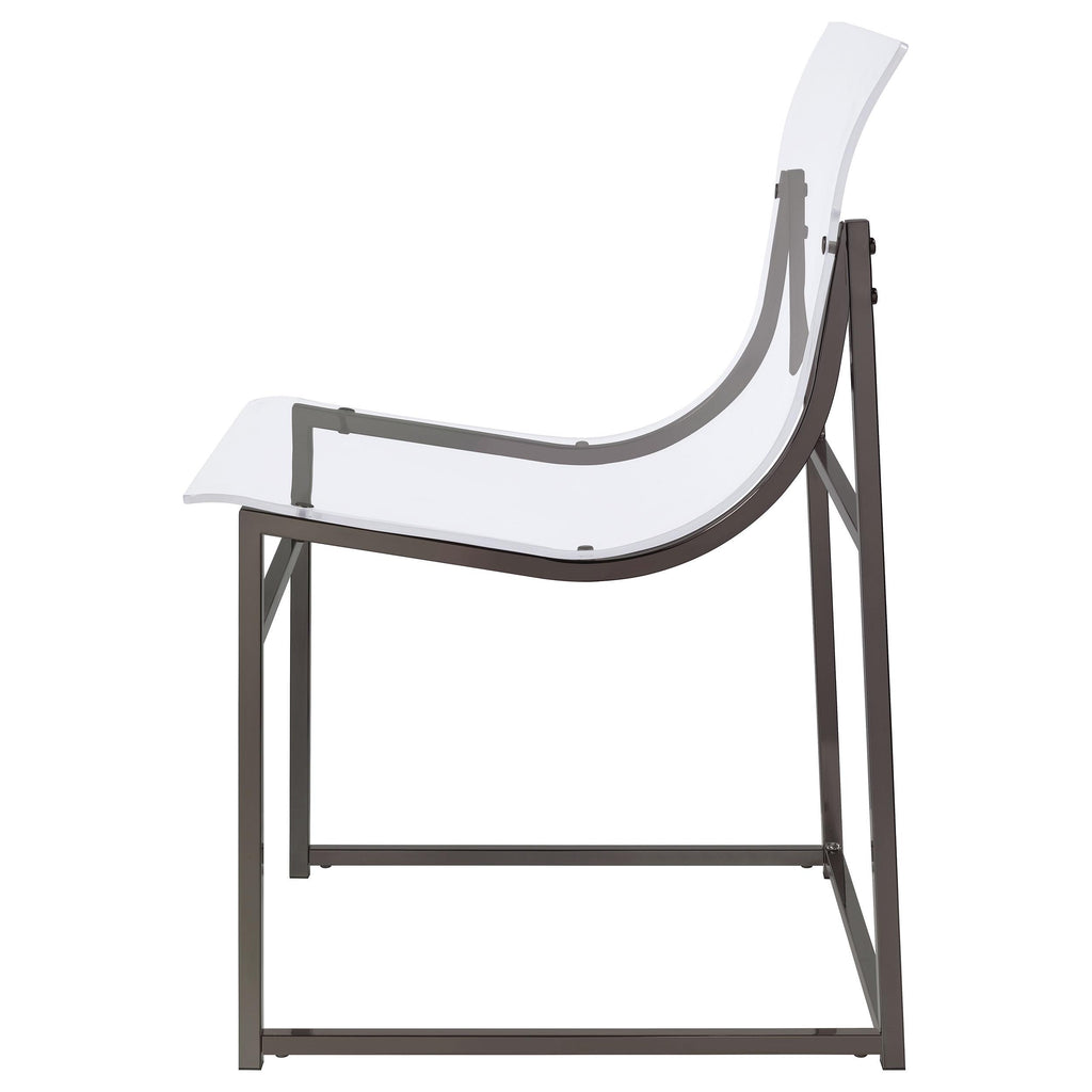 • Long, clear acrylic panels attach to frames and add a clear view of chairs' frame backs
