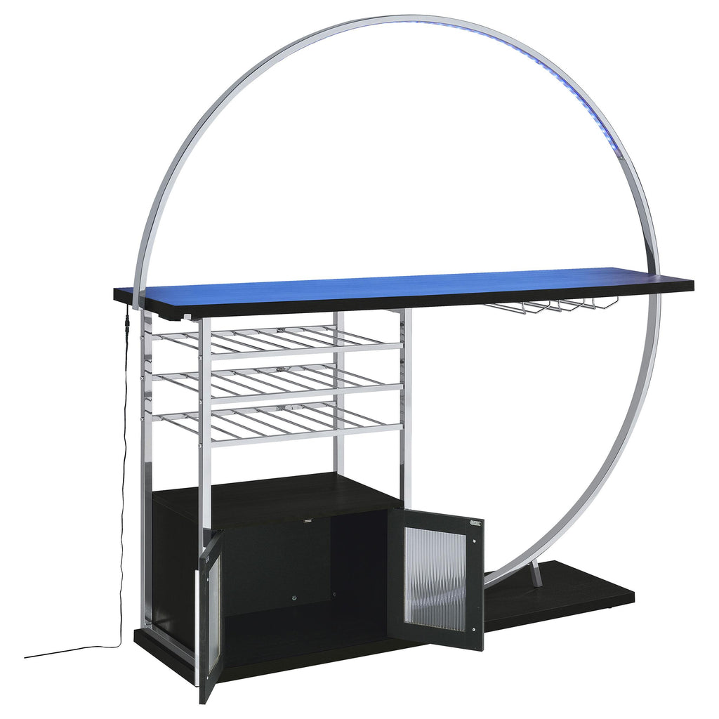• Contemporary home bar with customizable LED lighting featuring 8 color options
