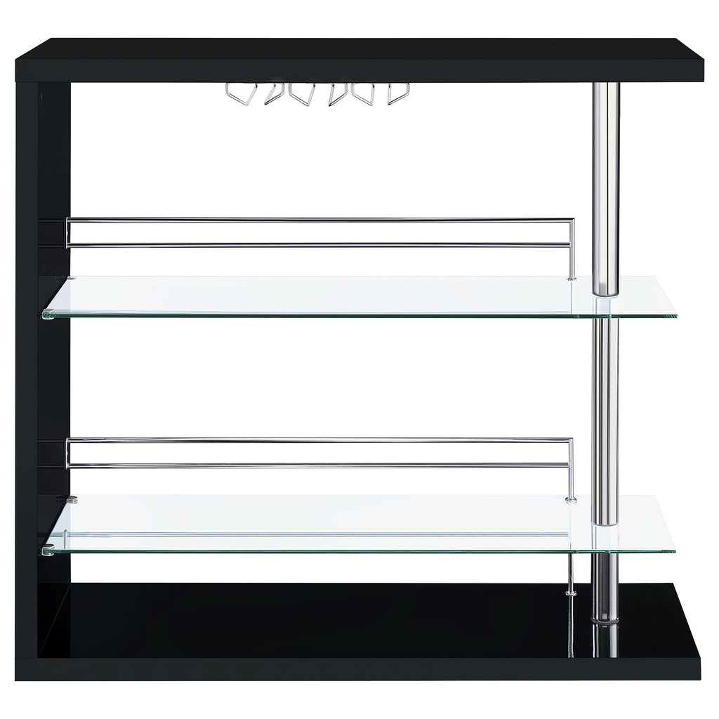 • Two (2) glass shelves with guardrails and stemware racks add storage and protect the stored items
