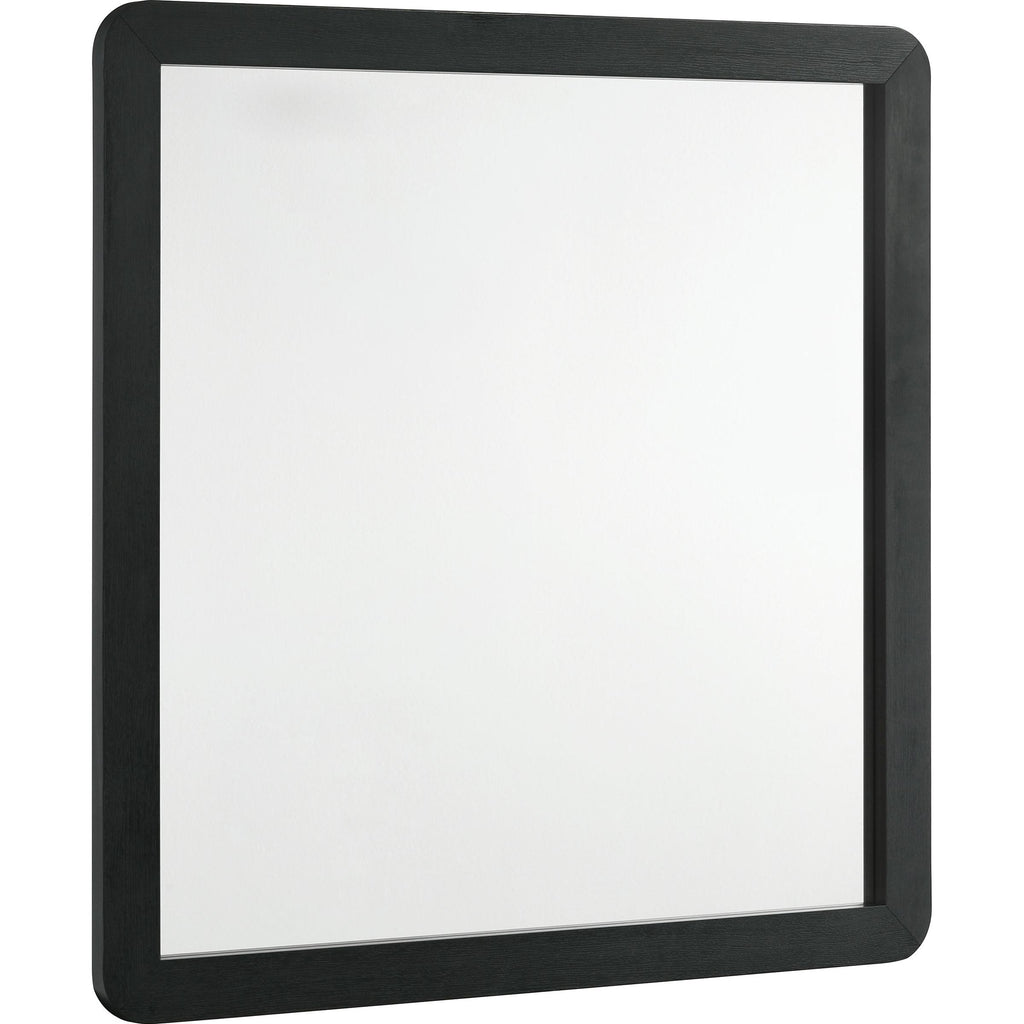 Reimagine your bedroom entirely with the sophistication of a modern bedroom set. It focuses on a chic upholstered bed that... Reimagine your bedroom entirely with the sophistication of a modern bedroom set. It focuses on a chic upholstered bed that features a pair of padded panels with charcoal fabric that creates a soft, inviting presence that's perfect for lounging while maintaining a refined look. Storage pieces add ample space for organization. The dresser includes a mirror that lightens the look and provides reflectivity and a place for beauty rituals. A black finish is paired with old finish hardware, creating a touch of glam allure perfect for a sophisticated bedroom. View more