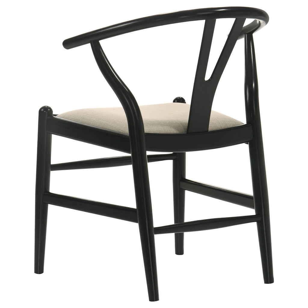 • Bold black finish framing and soft beige fabric upholstered seats add a pleasing palette contrast