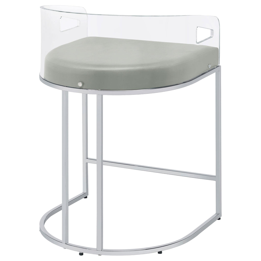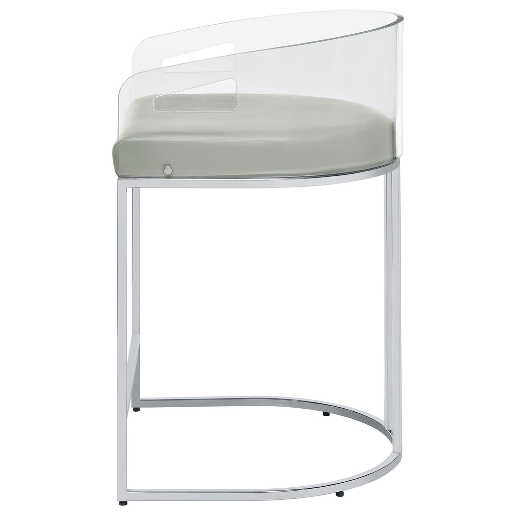 • Ultra-modern with a retro-inspired vibe, these stools feature a curved backrest in a clear acrylic material, leatherette cushion, and slim metal legs in a lustrous chrome finish