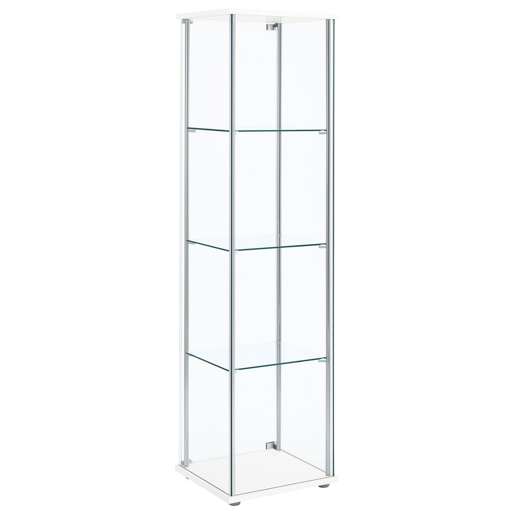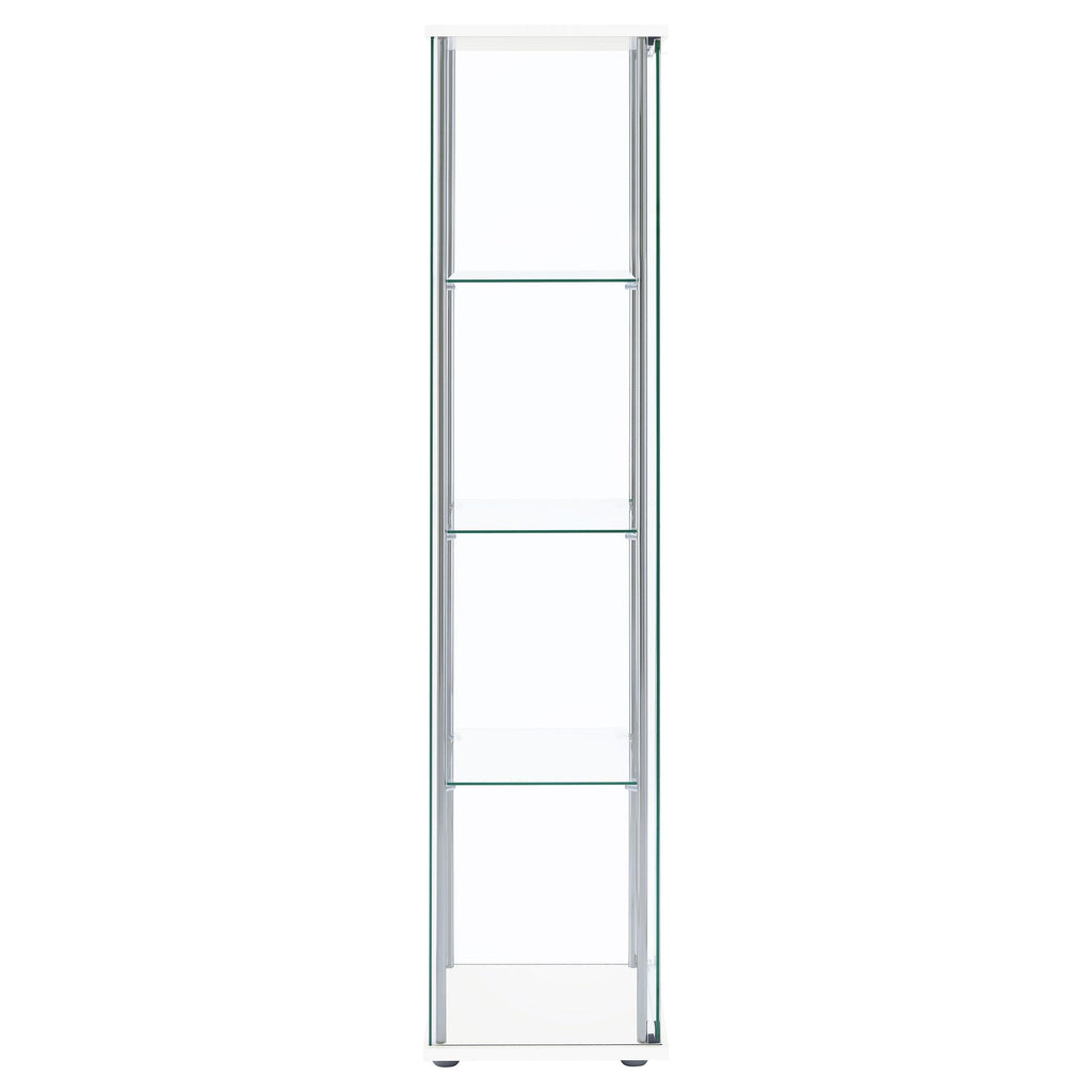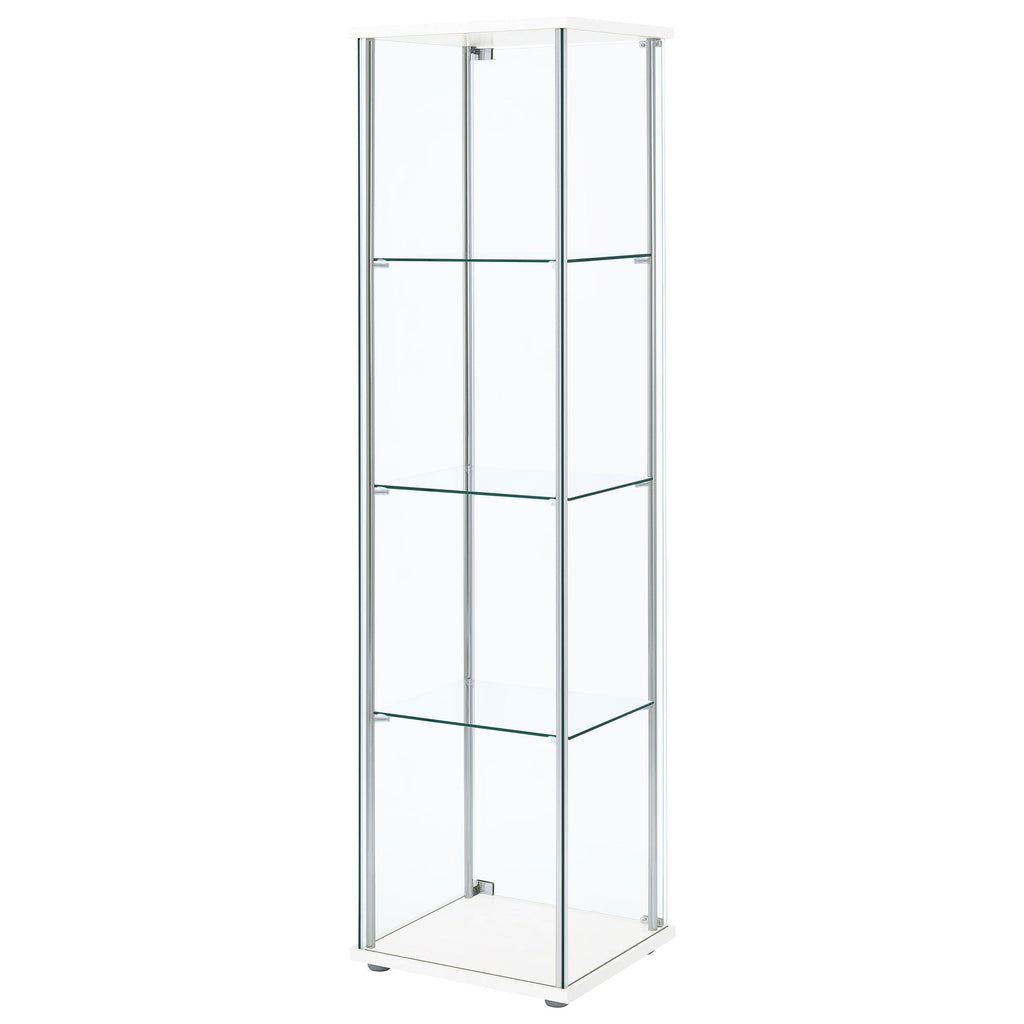 • Modern curio cabinet with rectangular top and base provides classic elegance