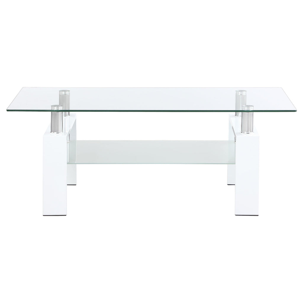 • Rectangular cocktail table with a sleek clear tempered glass top design
