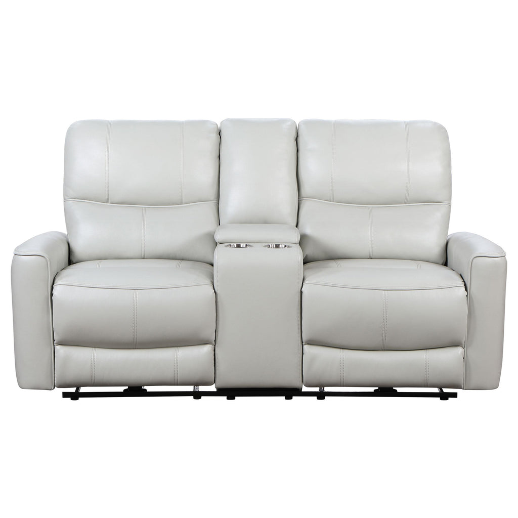 • Loveseat with versatile dove grey leatherette upholstery adds a fresh tone and easy-care maintenance