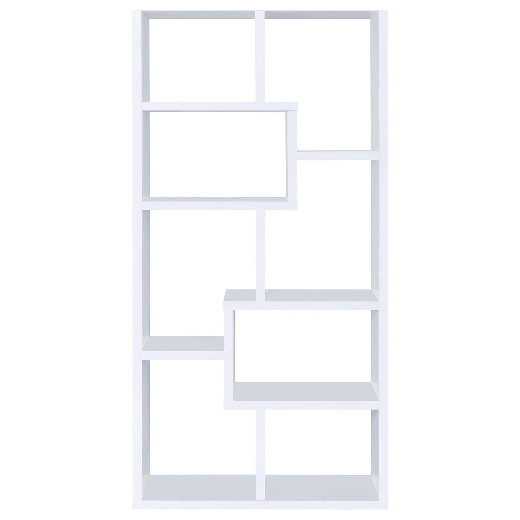 • Geometric bookcase with a seemingly random pattern of boxes creates an attention-grabbing display for your favorite keepsakes and books