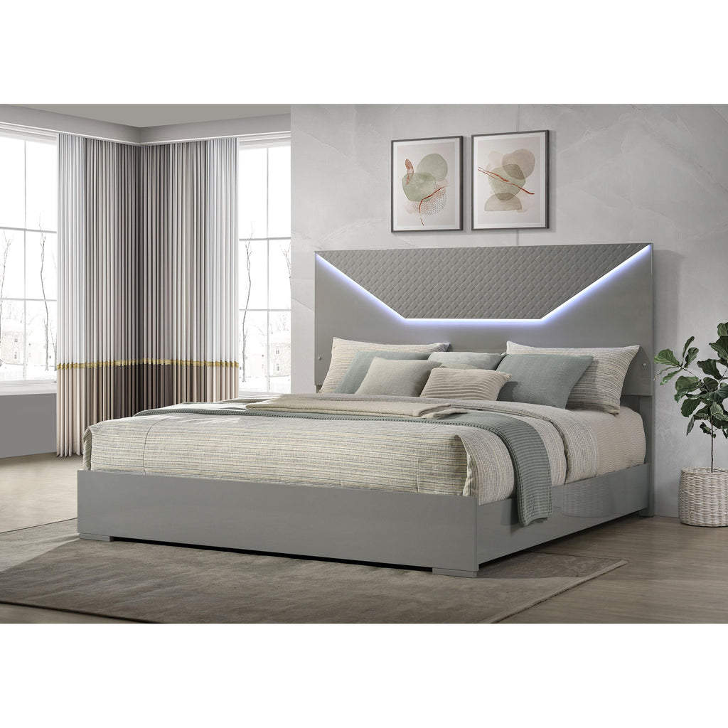 • Contemporary eastern king bed with grey high gloss finish and modern Italian style