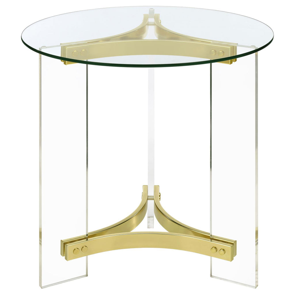 Coaster Furniture Janessa 710067 Round Glass Top Acrylic Leg End Table - Matte Brass