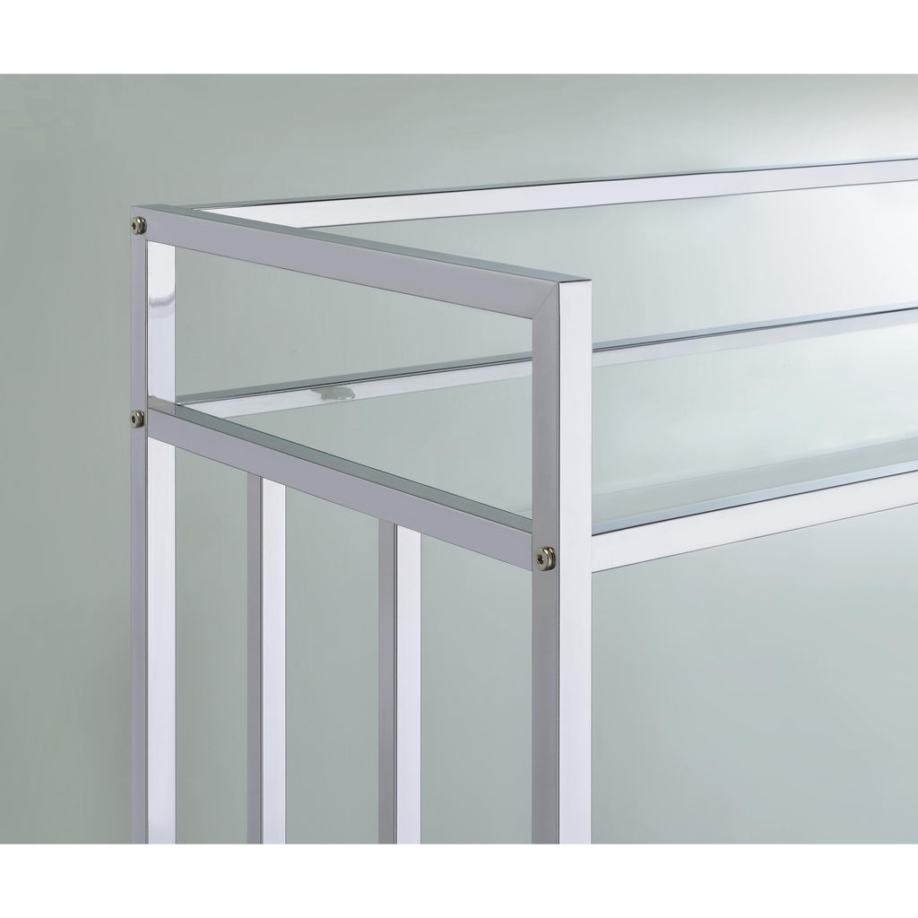 • Two tiers of clear tempered glass shelves for ample storage