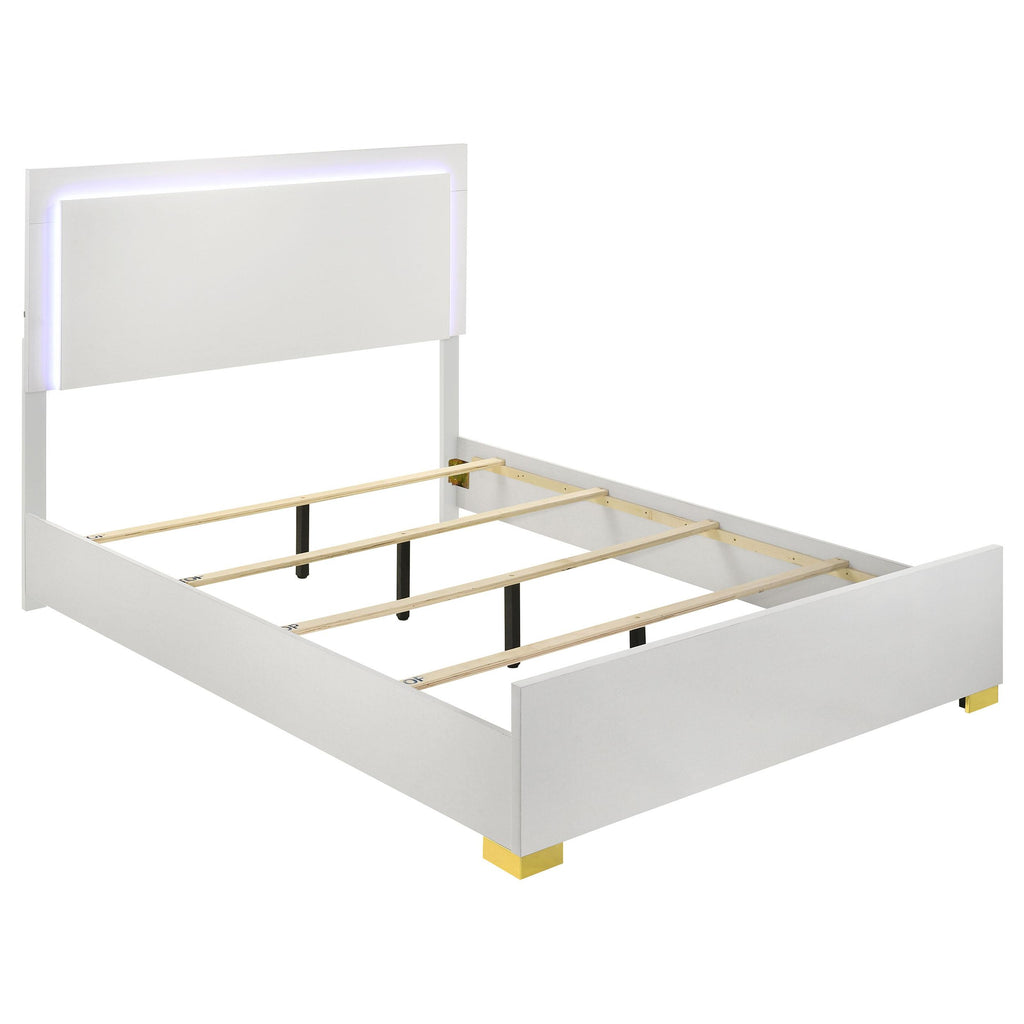• Enjoy the ethereal ambiance created by energy-efficient lighting framing its tall headboard, easily controlled through headboard-mounted touch buttons