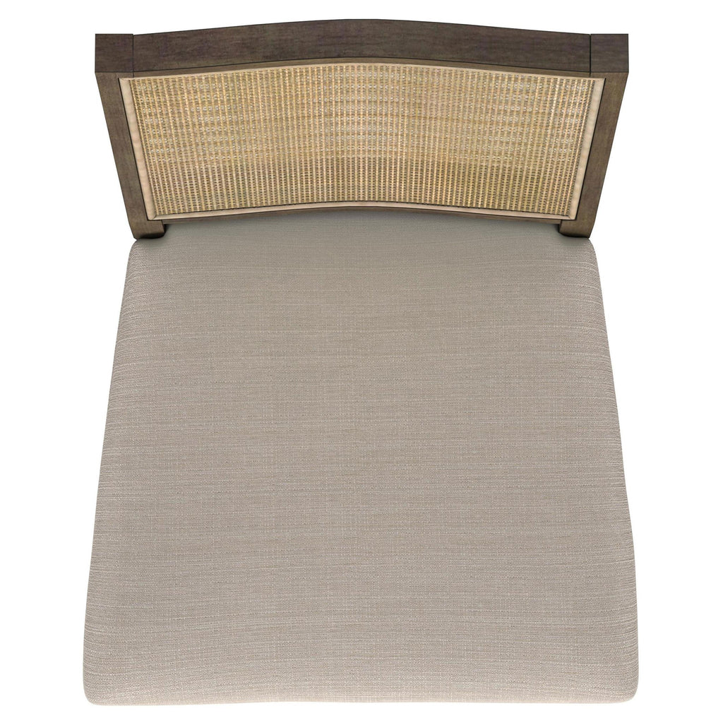 A trio of natural hues brings refined but casual character to a modern farmhouse dining chair. Perfect for friends and... A trio of natural hues brings refined but casual character to a modern farmhouse dining chair. Perfect for friends and family enjoying delicious meals, the chair features a plush foam seat with beige upholstery. Its back is rattan, adding texture and character while maintaining a light, airy look and feel that's rich and breathable. Its classic stance features an armless silhouette complete with a gently angled back and straight, tapering legs. The natural finish of the wood offers a refined but accessible look, perfect for inviting family spaces. View more