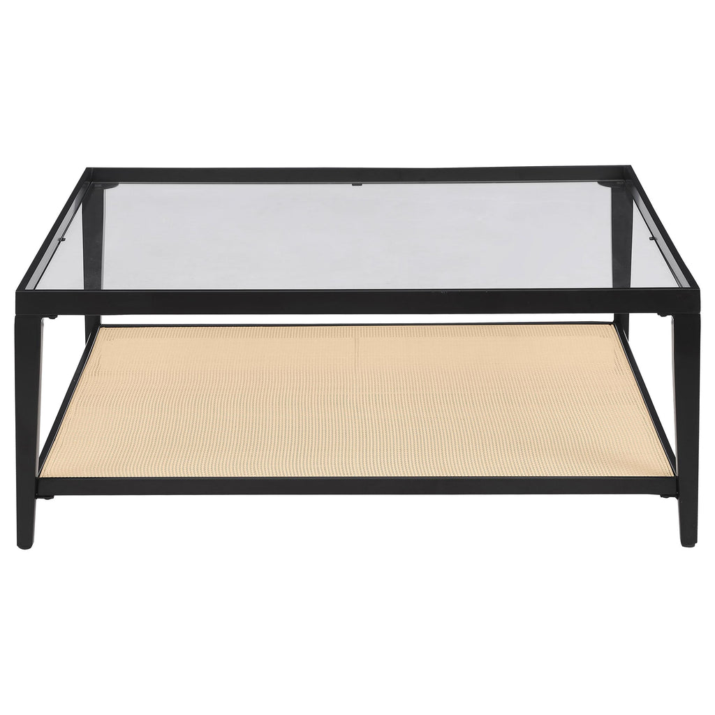 • Square coffee table featuring a sturdy black powder-coated metal frame for lasting durability