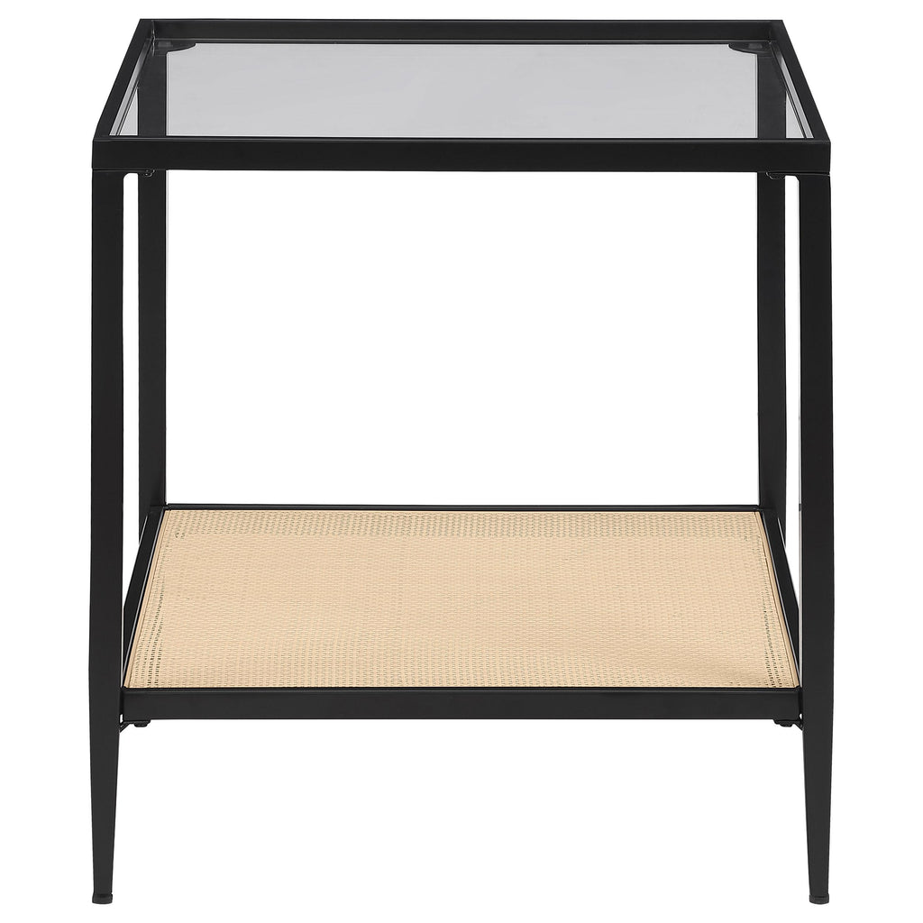 • Square end table with a durable black powder-coated metal frame for lasting strength
