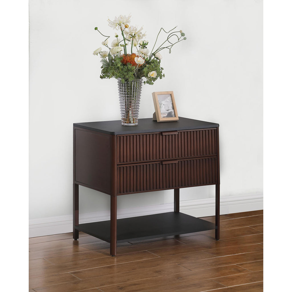 Coaster Furniture Zimmerlee 930221 2-Drawer Side Table with Shelf - Rust Brown