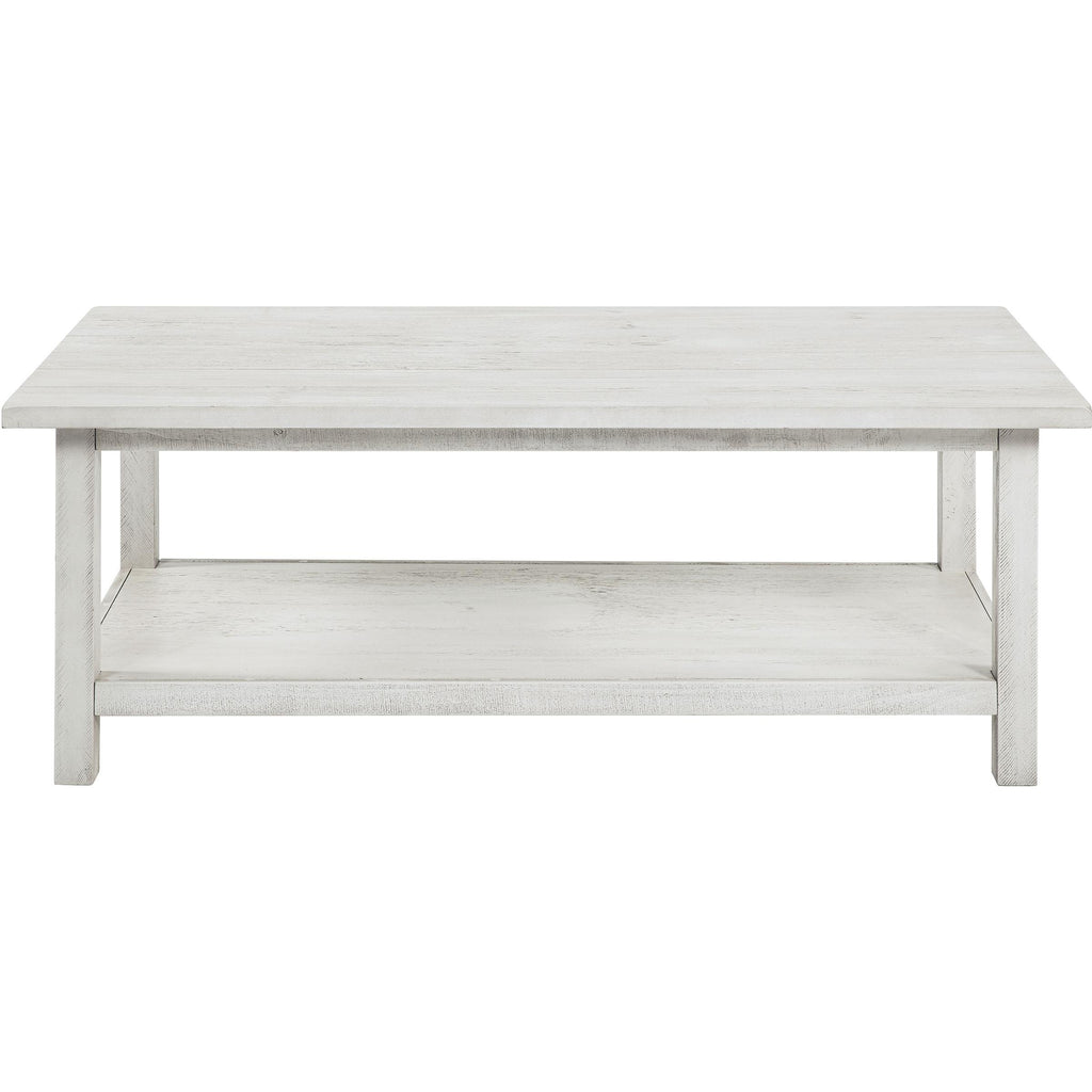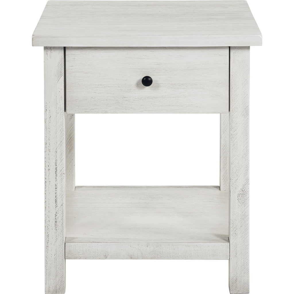 • Distressed white finish imparts a cozy, rustic flair to your décor scheme