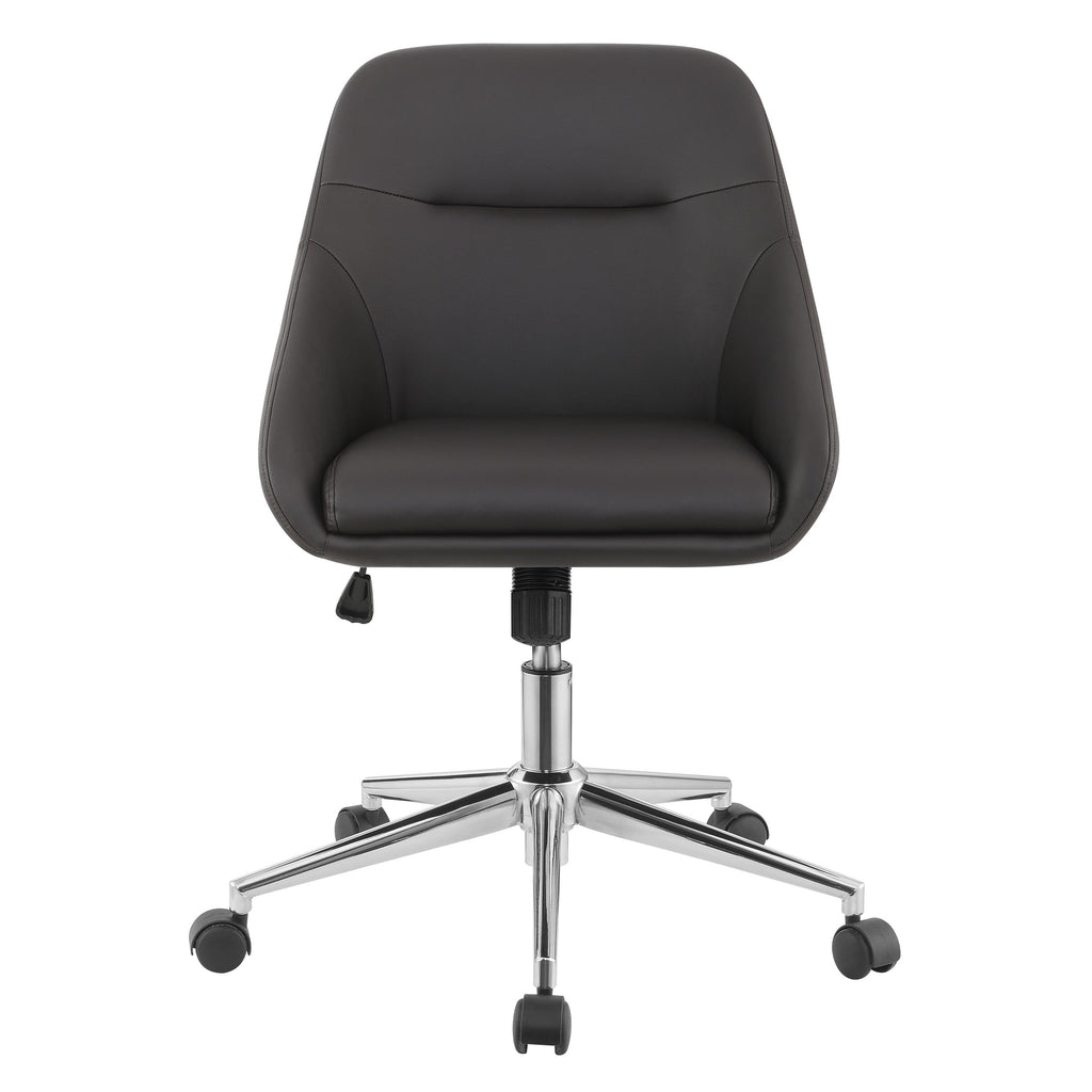 • Wrapped in soft and smooth leatherette, this modern office chair features contoured edges for an elegant, contemporary silhouette with a pintuck design and sloped armrests