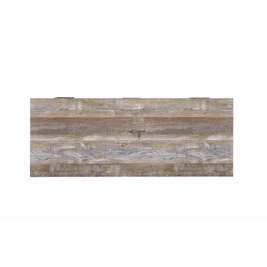 • Weathered oak wood finish and black finish for the metal frame combine to create a utilitarian and minimalist feel