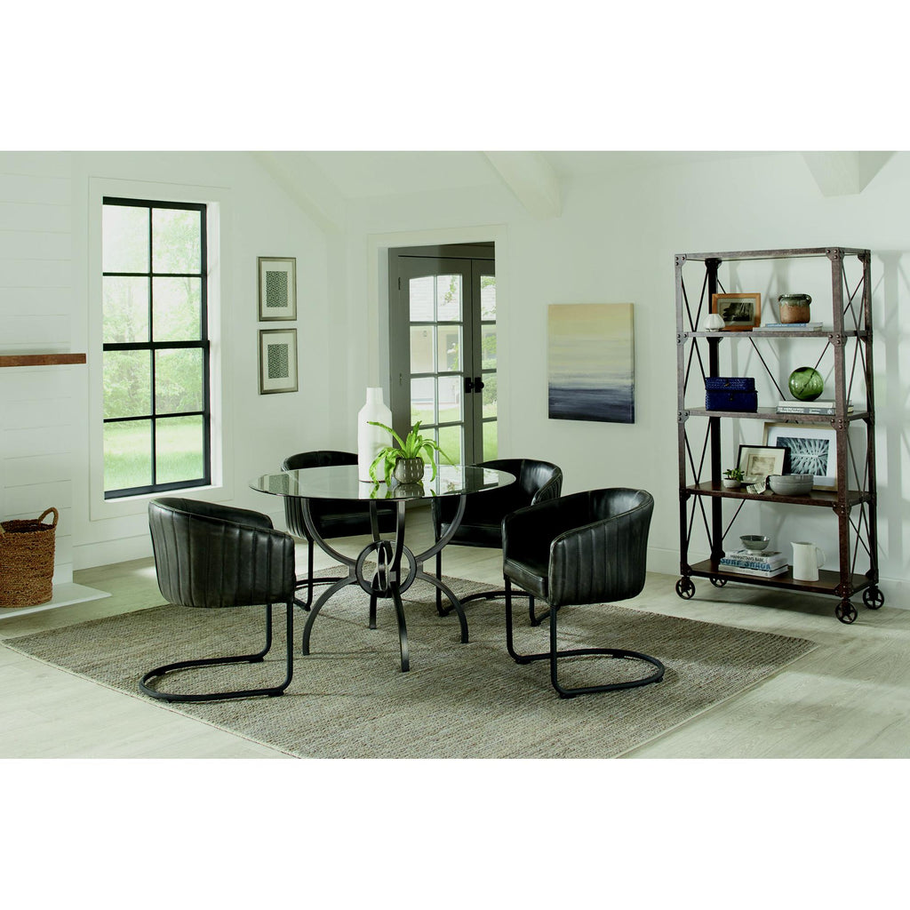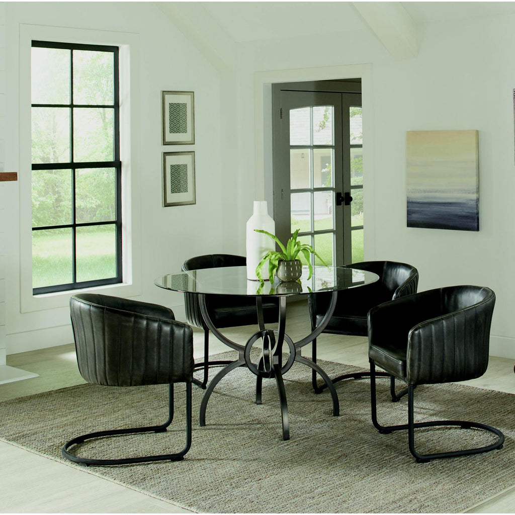 • Four stylized metal M legs in gunmetal finish