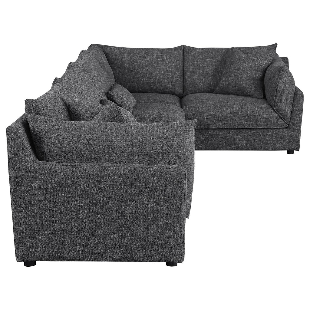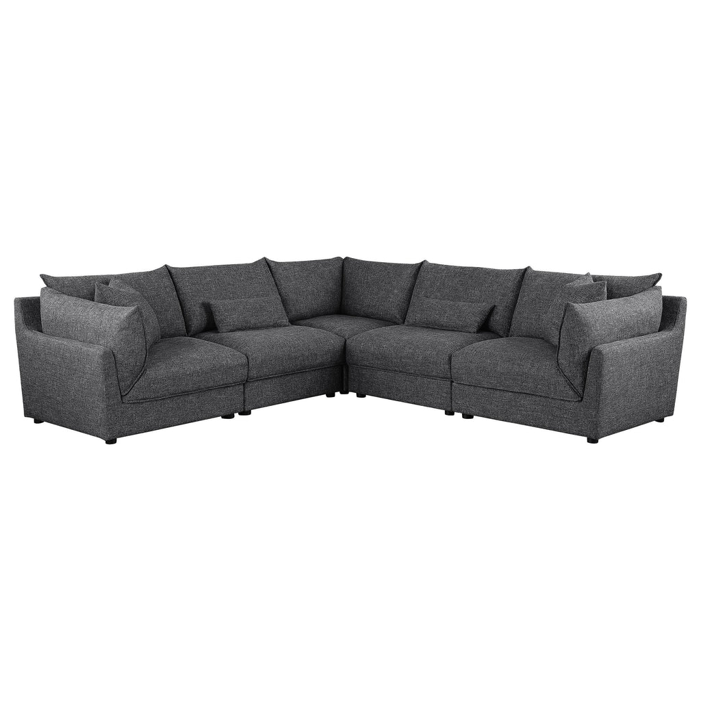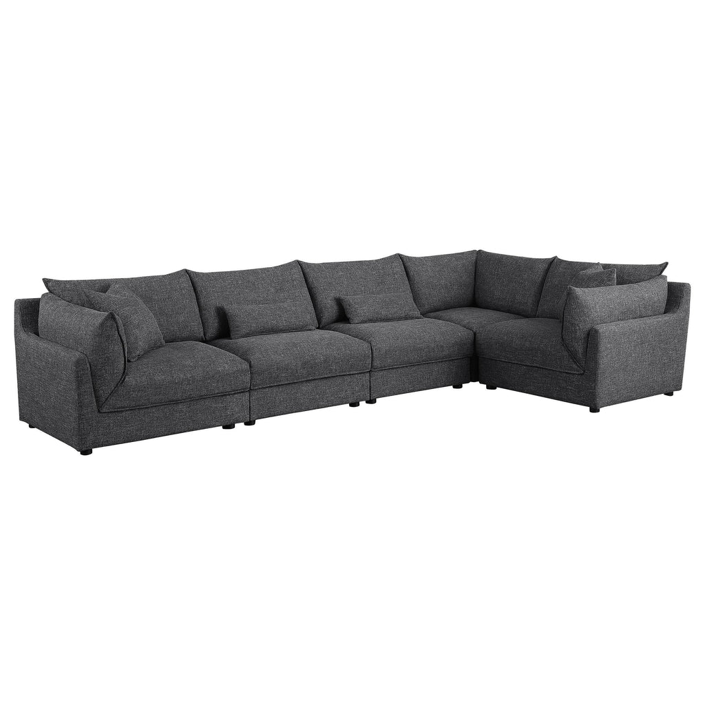 • Five-piece sectional includes two armless chairs, one corner wedge, one left-facing end unit and one right-facing end unit