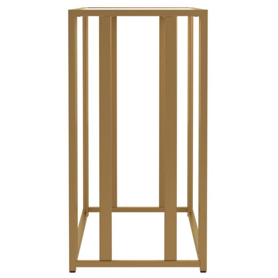 • Geometric base made from heavy-gauge metal with matte brass electroplated finish