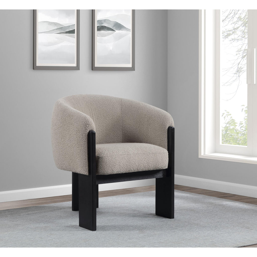 • Textured boucle upholstery adds an on-trend, fresh look and feel in your den or living room