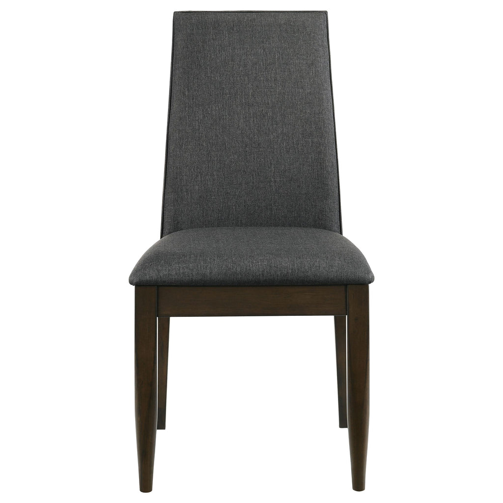 • Chairs have seat frame construction upholstered in a grey fabric