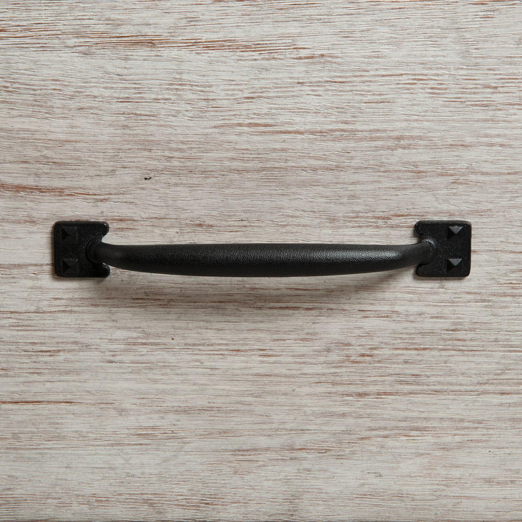 • Dark metal drawer pulls