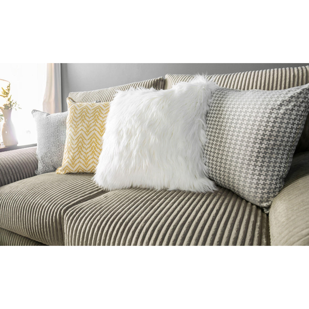 Corduroy is back in! Don't worry this textured wide wale corduroy sofa set has been covered in microfiber for an... Corduroy is back in! Don't worry this textured wide wale corduroy sofa set has been covered in microfiber for an ultra plush comfort. Everything on this set is over sized, wide flared arms, thick padded seats, plush loose back pillows, all combine for a set that you can sink into and feel hugged by. Included throw pillows pop out against the plain upholstering to help the set sit into your room Decor and inspire you to fine complimentary pieces. Your visitors will be intrigued by the texture, but will stay for the comfort. View more