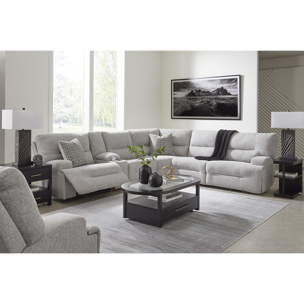 • Includes 6 modular pieces: left-arm facing power recliner, power armless recliner, armless chair, console with storage, wedge and right-arm facing power recliner