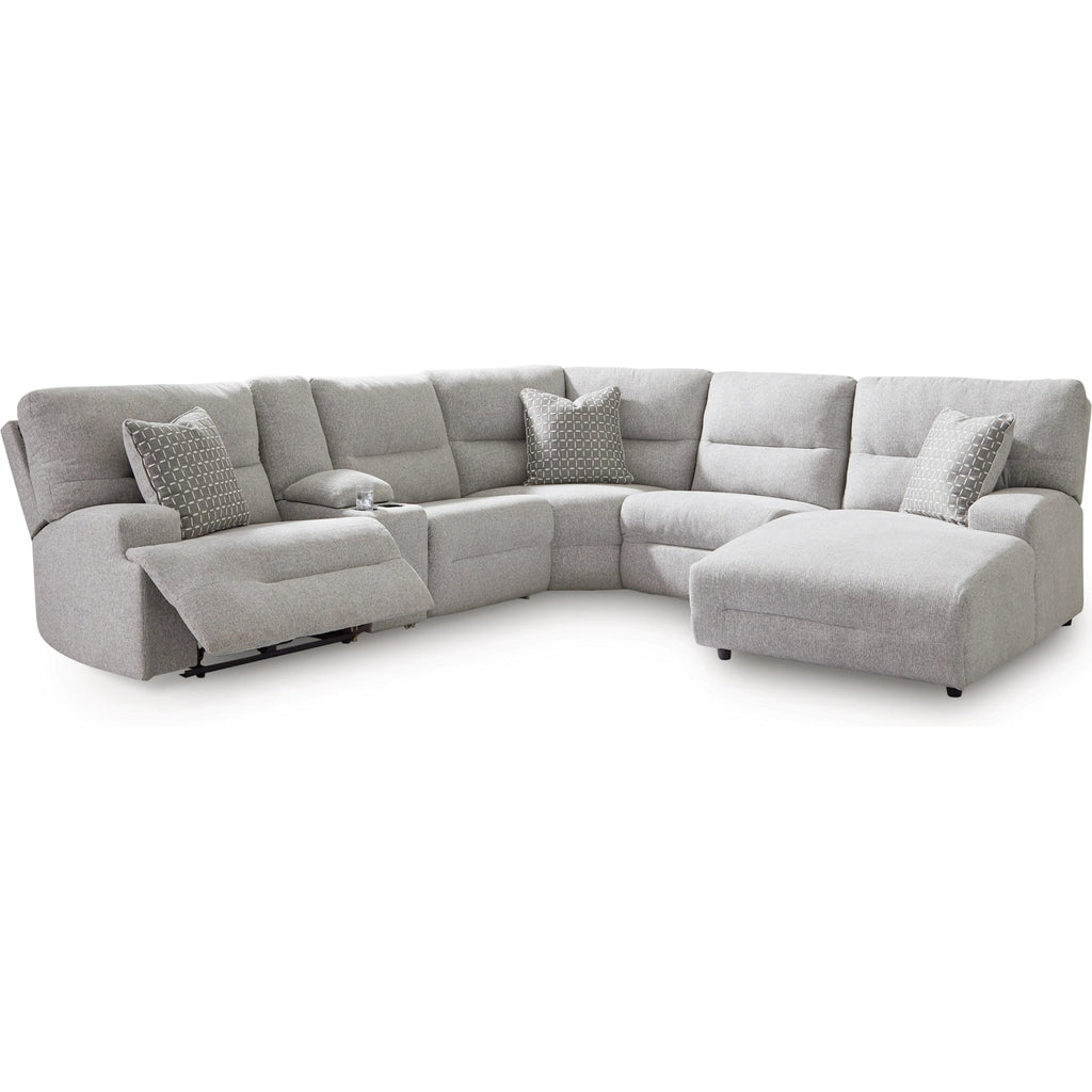 • Includes 6 modular pieces: left-arm facing power recliner, power armless recliner, armless chair, console with storage, wedge and right-arm facing power reclining back chaise