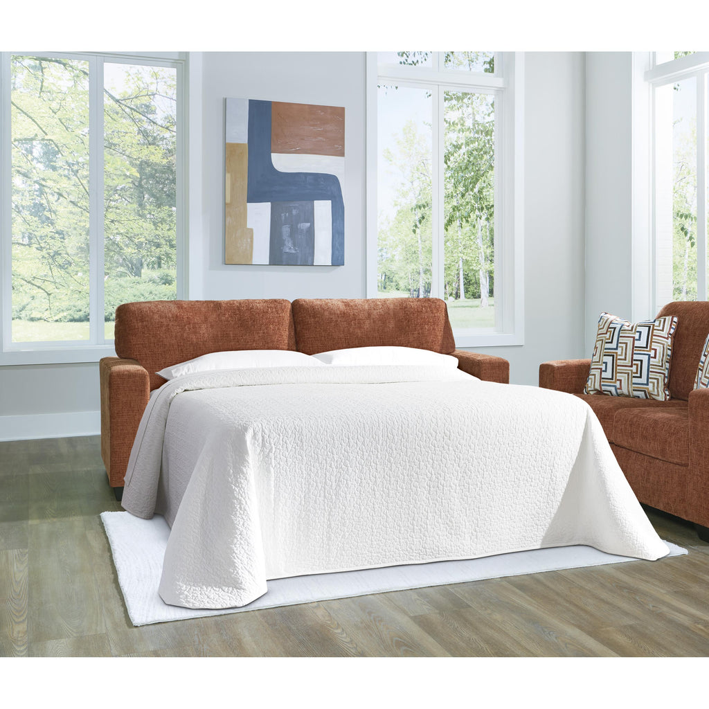 • Included bi-fold queen memory foam mattress sits atop a supportive steel frame