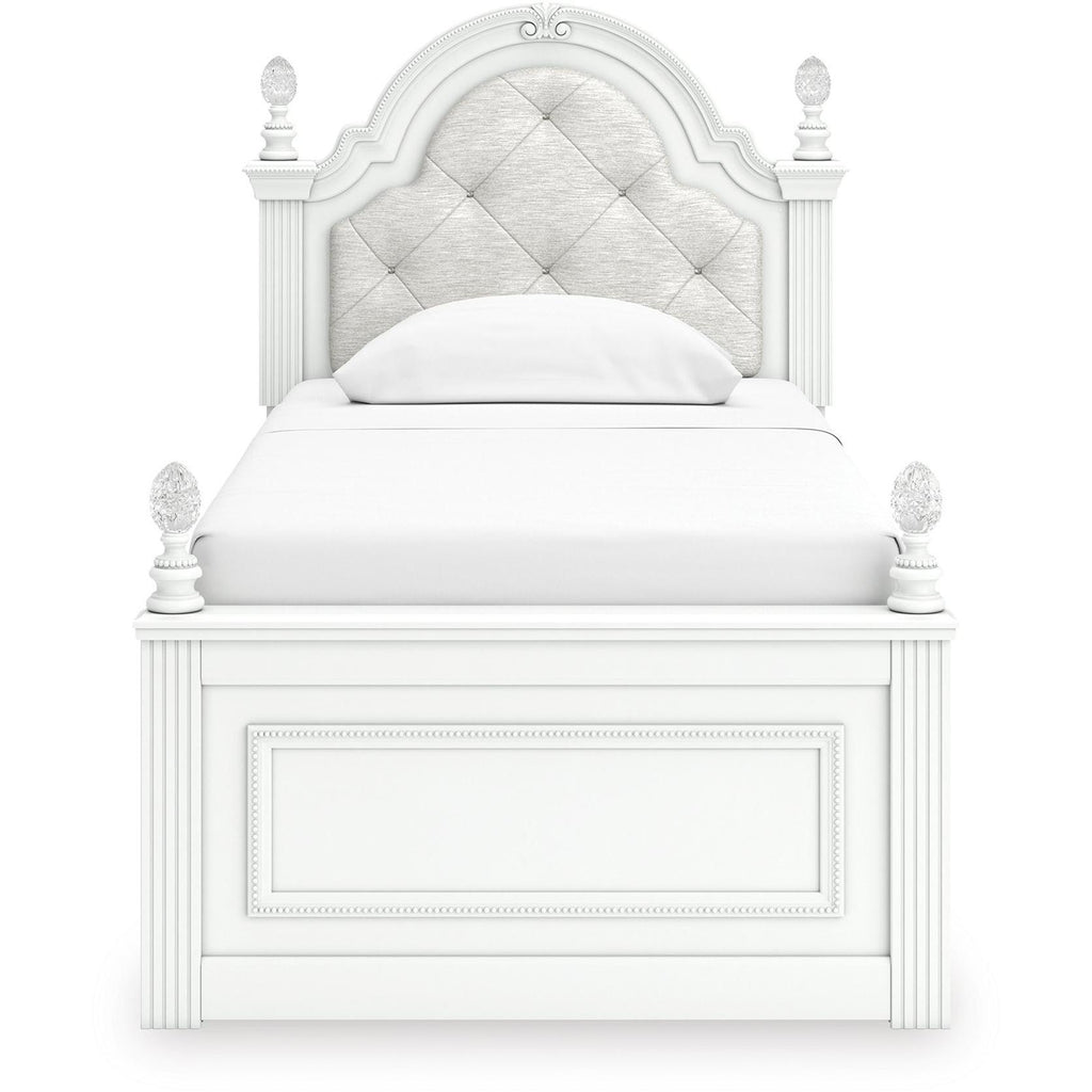 • Includes upholstered panel headboard, panel footboard and rails