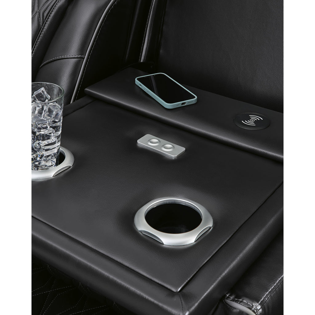 • Drop-down table with LED reading lights, dual cup holders and wireless charging; power cord included; UL Listed