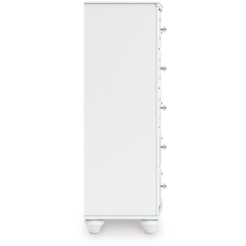 • Drawer interiors are lined with a faux linen laminate for a clean, finished look