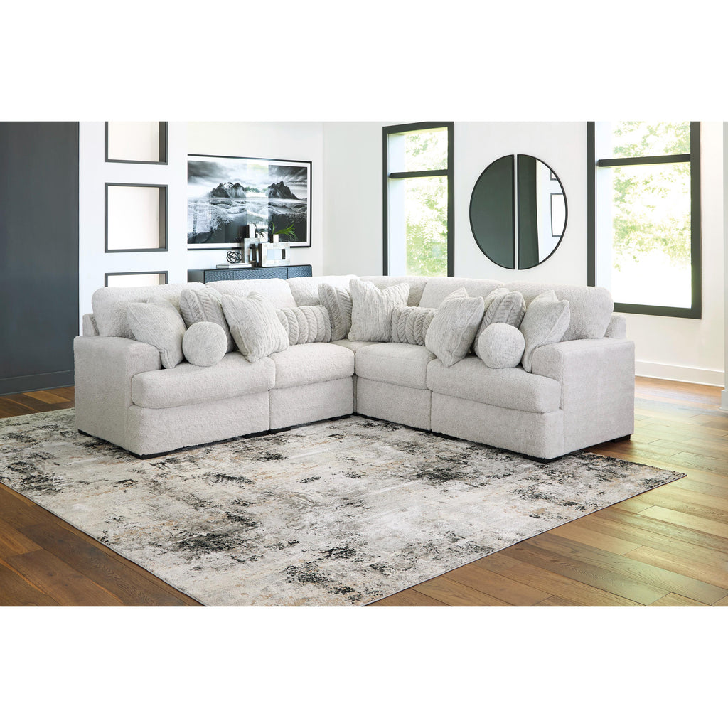 • Includes 5 modular pieces: left-arm facing corner chair, 2 armless chairs, wedge and right-arm facing corner chair