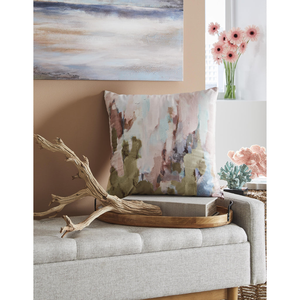 Bring a touch of contemporary artistic charm to your home. An abstract watercolor design on this accent pillow adds an... Bring a touch of contemporary artistic charm to your home. An abstract watercolor design on this accent pillow adds an ethereal element to your decor. Plus its handy zippered cover is machine washable, making the pillow a practical yet stylish addition wherever you place it. View more