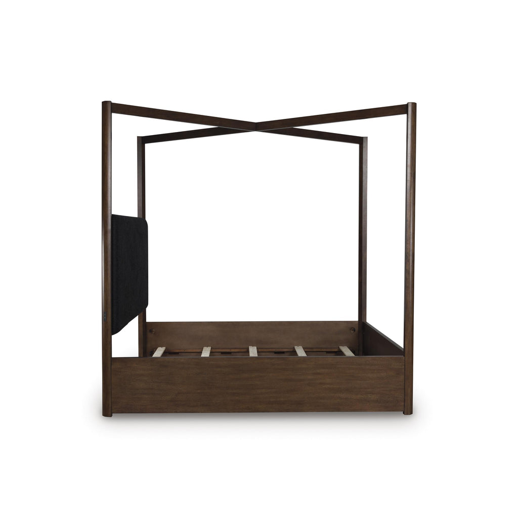 • Includes canopy, upholstered headboard, footboard, rails, posts and slats