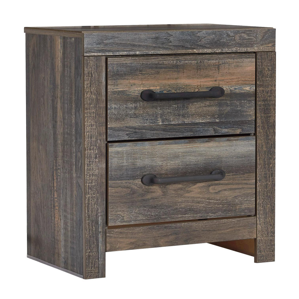 When merged in just the right way, rustic and industrial styles can make one happy marriage. Case in point: this... When merged in just the right way, rustic and industrial styles can make one happy marriage. Case in point: this bedroom package. A refined take on barn board beauty, its complex, replicated wood grain showcases hints of burnt orange and teal tones for a sense of weatherworn authenticity. Elongated metal drawer pulls elevate the aesthetic. View more