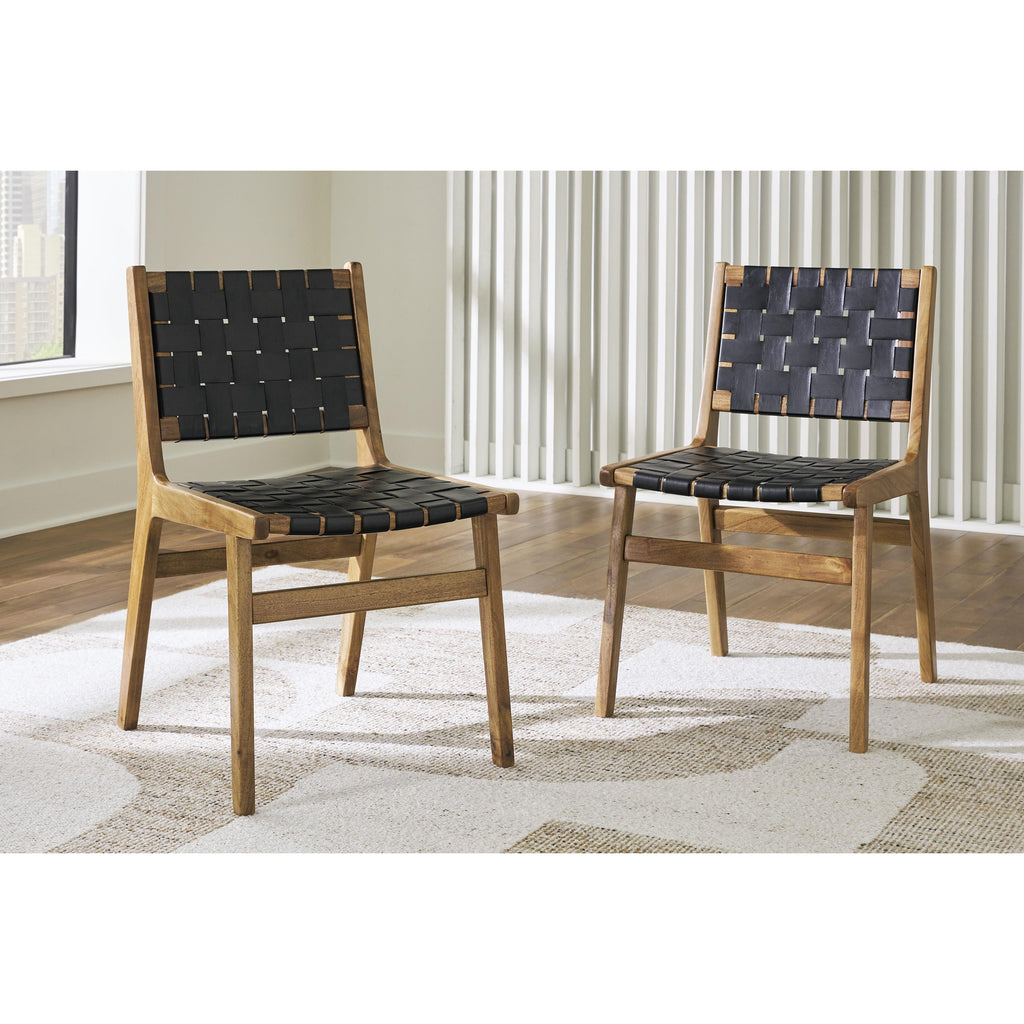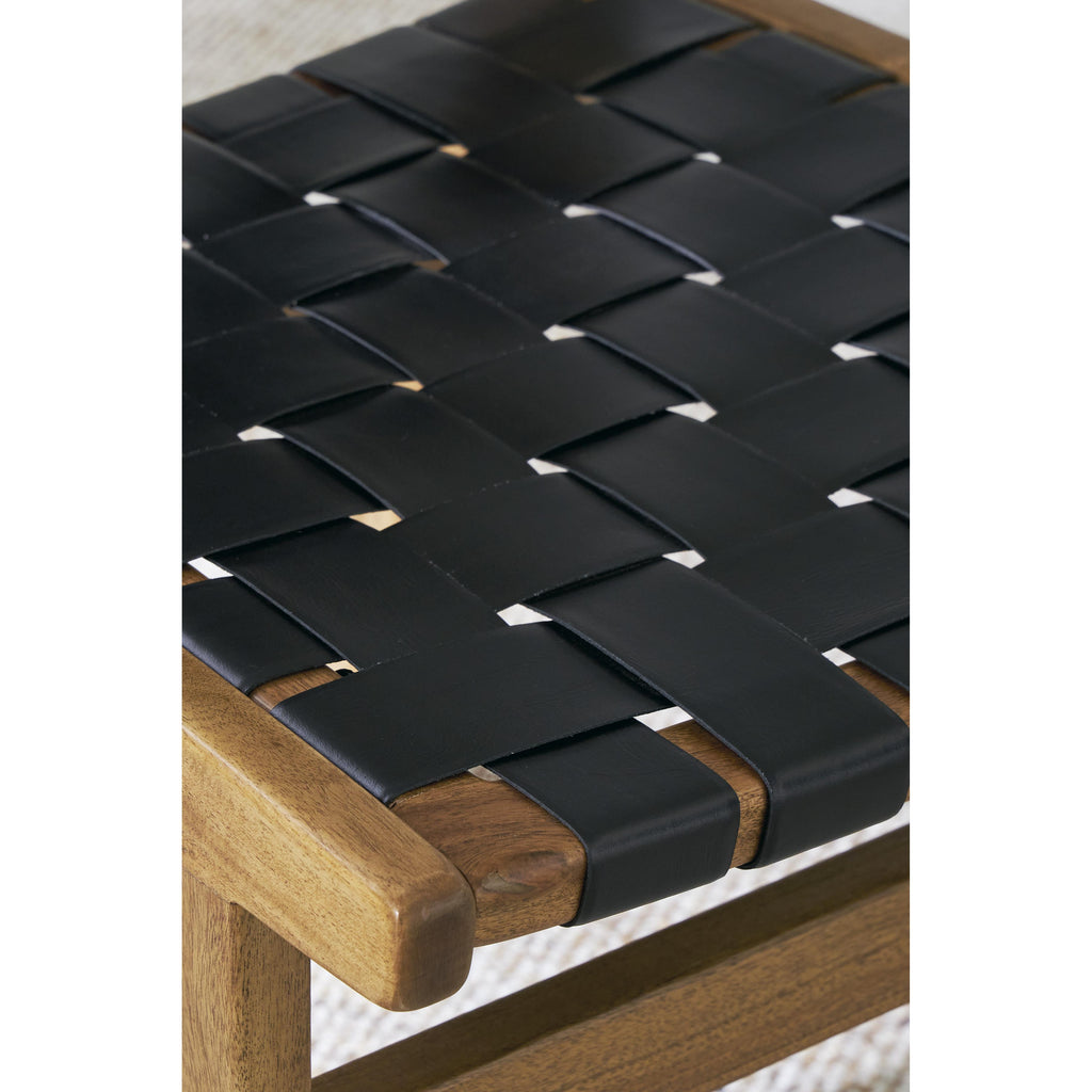 • Woven black leather straps