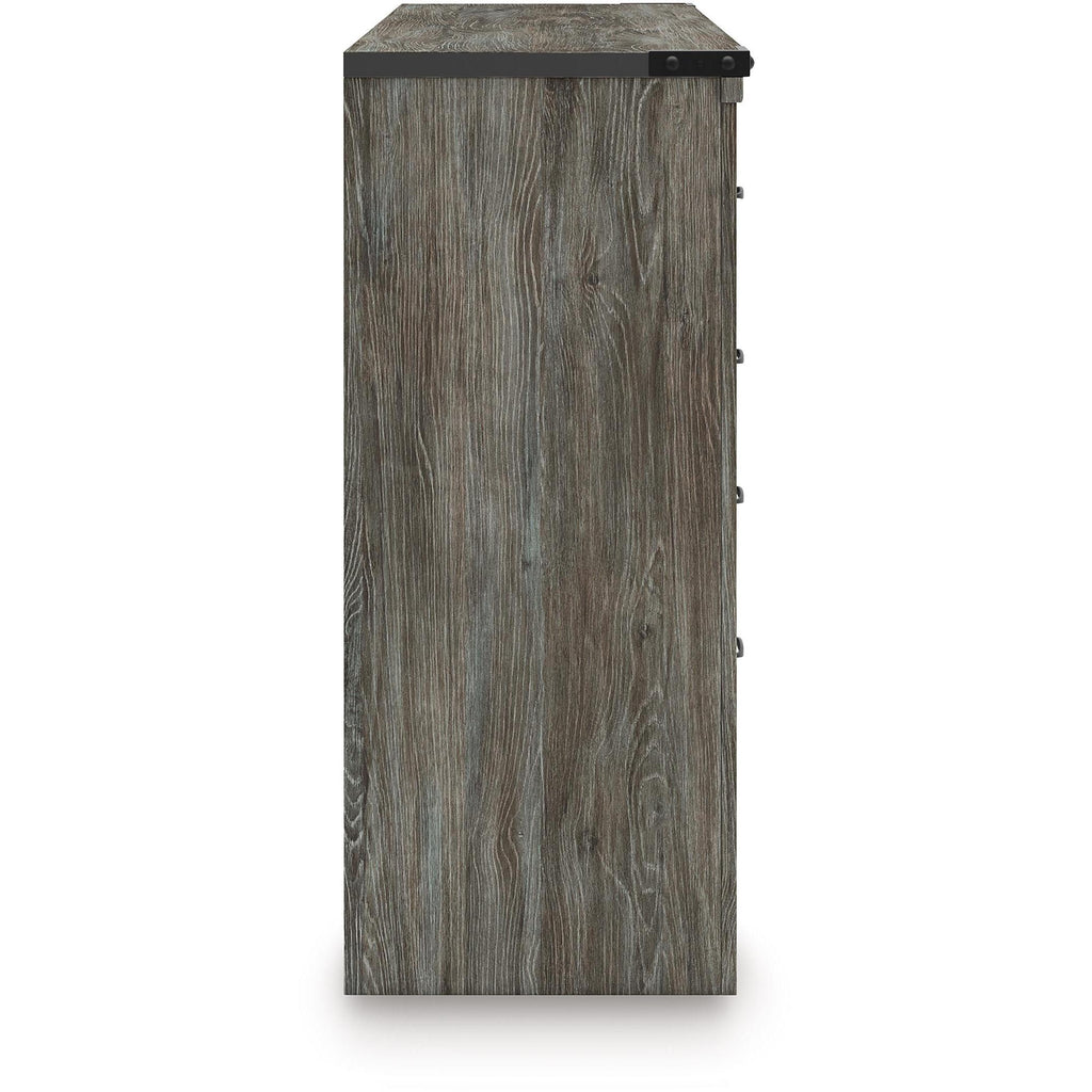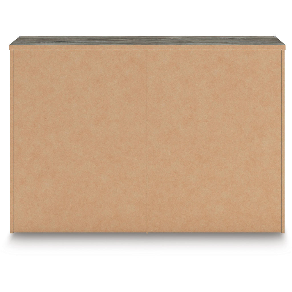 • Rustic warm gray finish over replicated oak grain with authentic touch