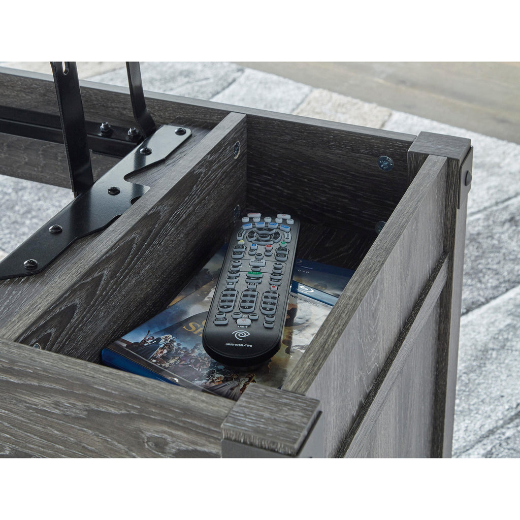 • Lift top design; hidden storage under lid