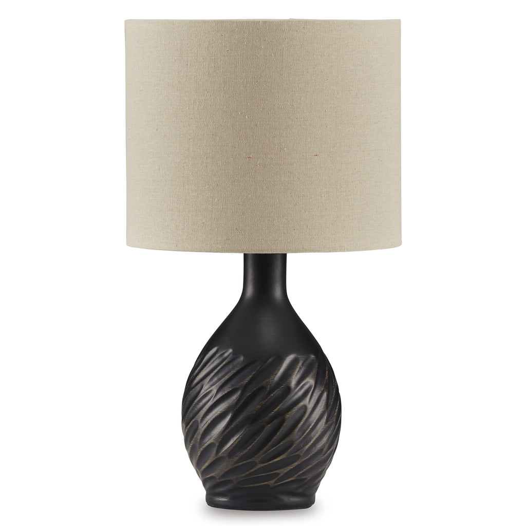 • Made of ceramic with drum hardback fabric shade