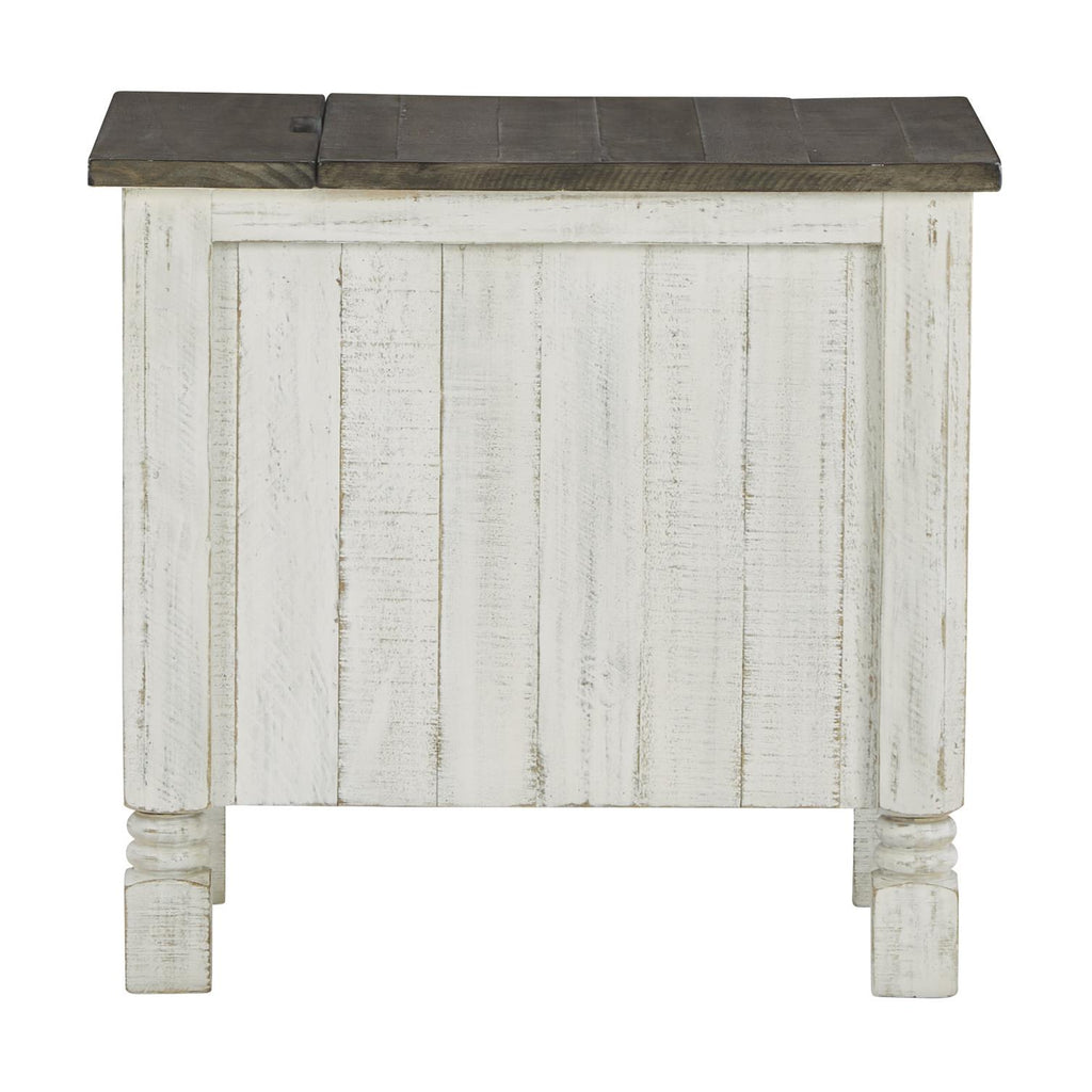 • Two-tone finish; distressed weathered gray top with distressed vintage white base