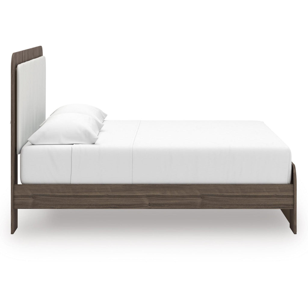 • Includes upholstered headboard, footboard, platform rails and roll slats