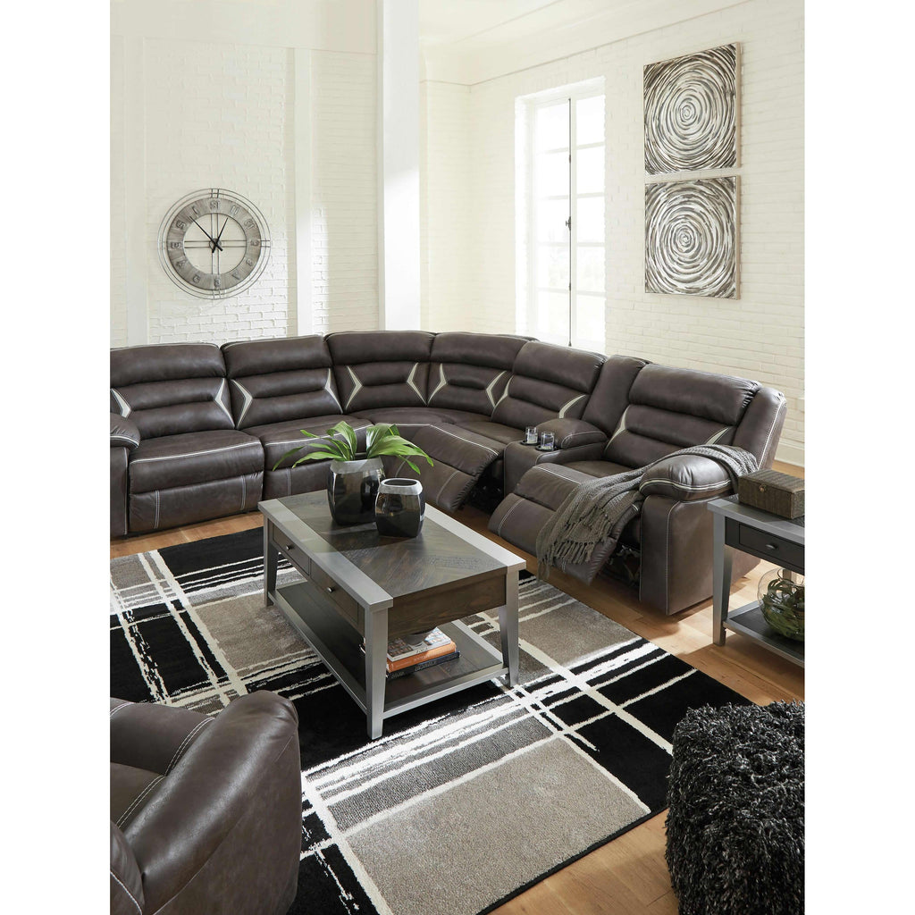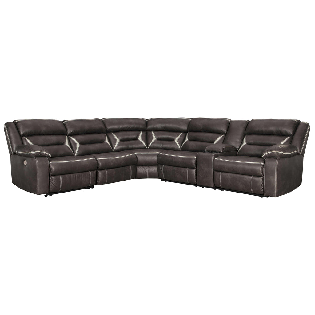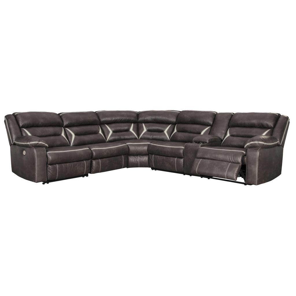 • Includes 4 pieces: armless chair, left-arm facing zero wall power recliner, right-arm facing power reclining sofa with console and wedge