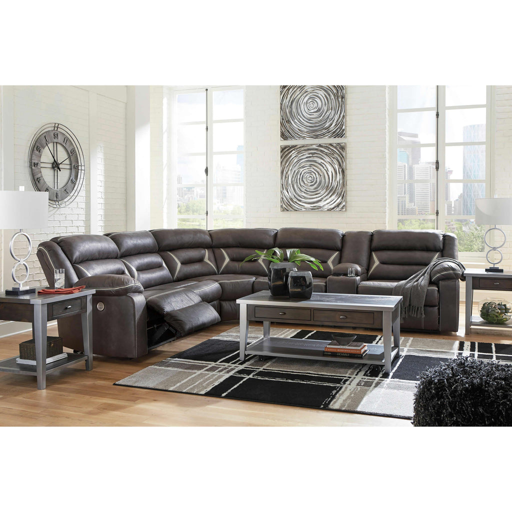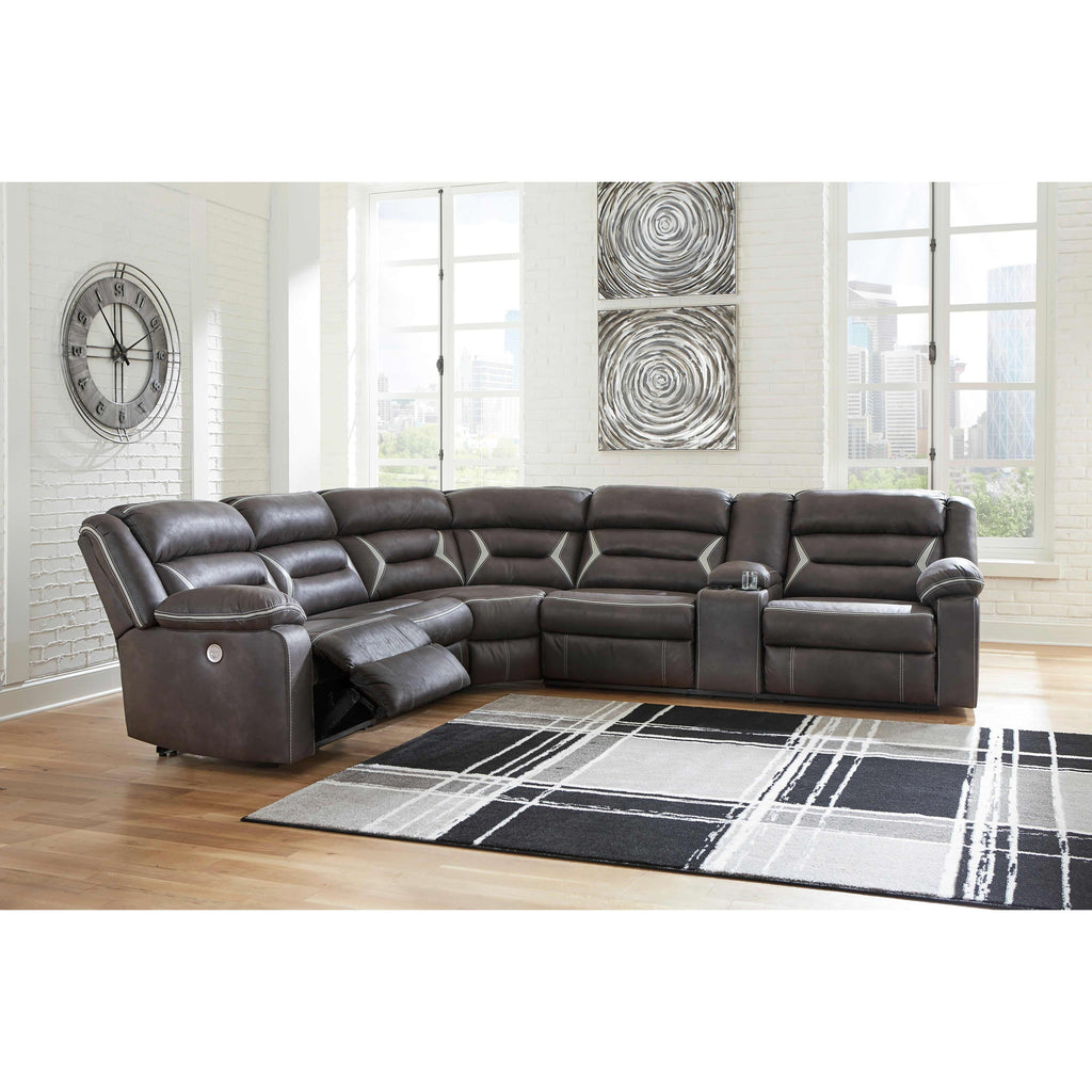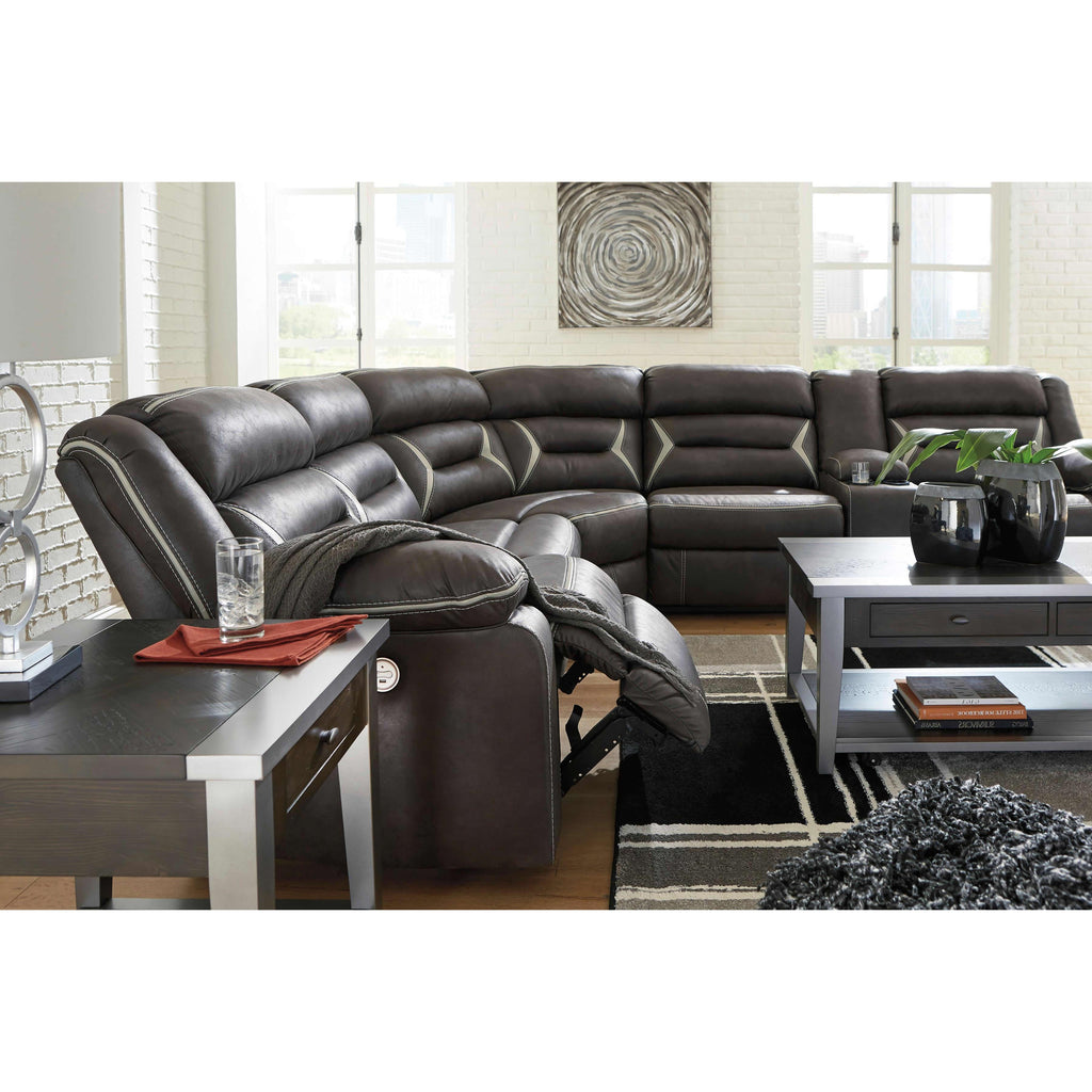 • Includes 4 pieces: armless chair, left-arm facing zero wall power recliner, right-arm facing power reclining sofa with console and wedge