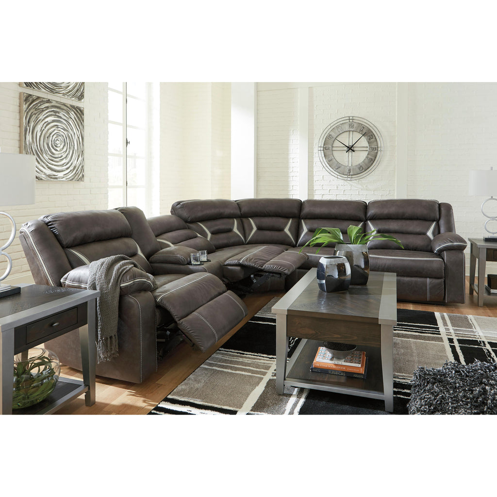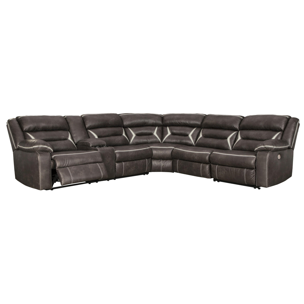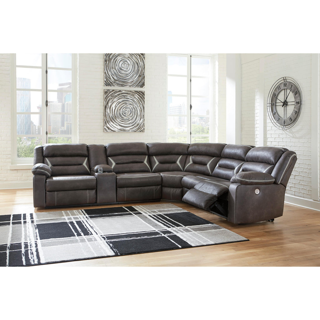 • Includes 4 pieces: armless chair, right-arm facing zero wall power recliner, left-arm facing power reclining sofa with console and wedge