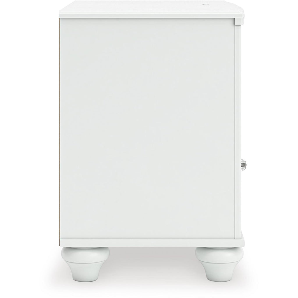 • Drawer interior is lined with a faux linen laminate for a clean, finished look
